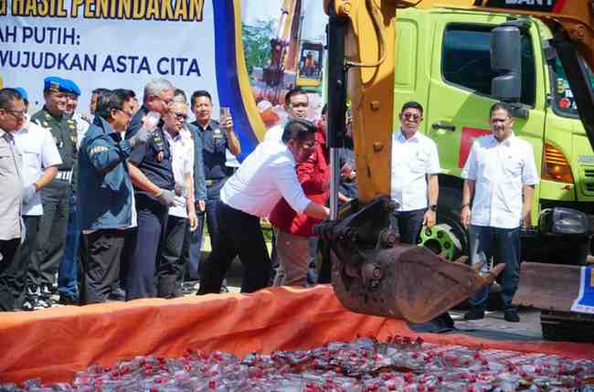 Adapun barang-barang yang dimusnahkan meliputi rokok ilegal, minuman beralkohol, pakaian bekas, serta berbagai barang larangan dan pembatasan lainnya.