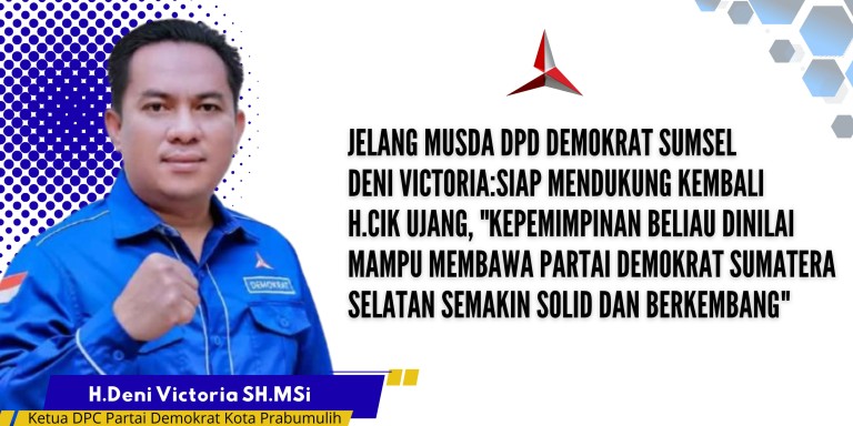 Ketua DPC Partai Demokrat Kota Prabumulih, H. Deni Victoria, SH, MSi, menyatakan bahwa pihaknya siap memberikan dukungan penuh kepada H. Cik Ujang untuk kembali memimpin DPD Partai Demokrat Sumatera Selatan.