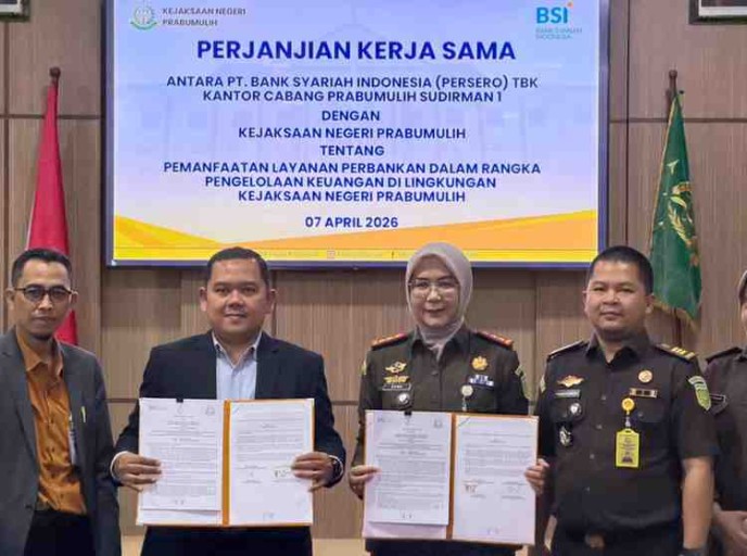 MusiNews.id, PRABUMULIH –Kejaksaan Negeri Prabumulih resmi menjalin kerja sama dengan Bank Syariah Indonesia (Persero) Tbk Kantor Cabang Prabumulih Sudirman 1 dalam rangka pemanfaatan layanan perbankan untuk pengelolaan keuangan di lingkungan kejaksaan, Selasa 7/4/2026.